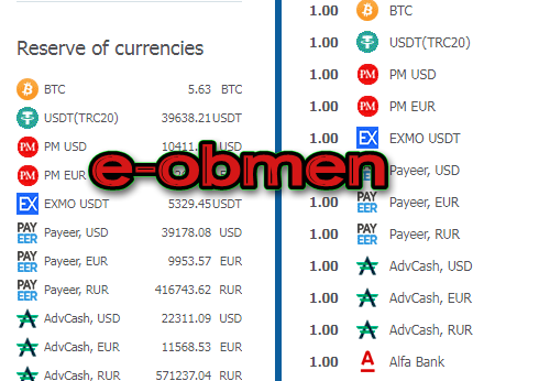- تقدم E-obmen خدمات التبادل الآلي لوحدات أنظمة الدفع الإلكترونية، سواء فيما بينها أو في صناديق النقد الدولية (العملات الدولية).