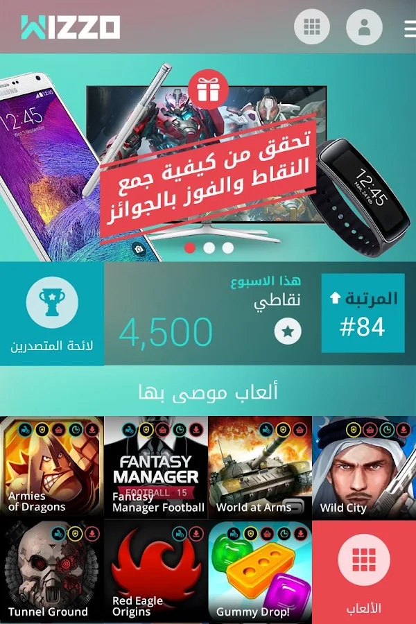 اربح نقاط من خلال الألعاب التي تحملها عبر تطبيق WIZZO وتنافس مع اصدقائك ولاعبين آخرين حول العالم.